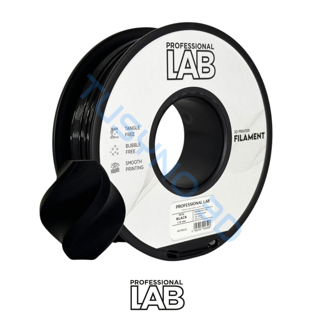 Prof. Lab PETG juodas – patvarus ir universalus 3D plastikas, atsparus smūgiams, drėgmei ir chemikalams. Tinka konstrukcinėms dalims, prototipams, korpusams ir buitiniams gaminiams.