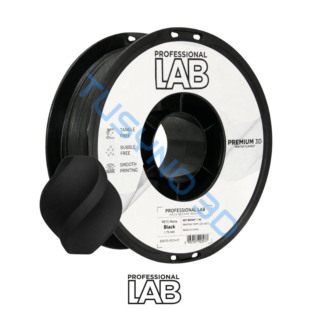 Prof. Lab PETG matinis juodas – patvarus ir universalus 3D plastikas, atsparus smūgiams, drėgmei ir chemikalams. Tinka konstrukcinėms dalims, prototipams, korpusams ir buitiniams gaminiams.
