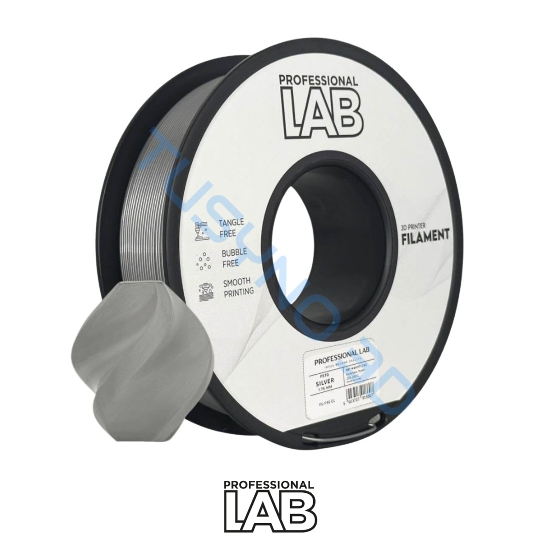 Prof. Lab PETG sidabrinė – patvarus ir universalus 3D plastikas, atsparus smūgiams, drėgmei ir chemikalams. Tinka konstrukcinėms dalims, prototipams, korpusams ir buitiniams gaminiams.