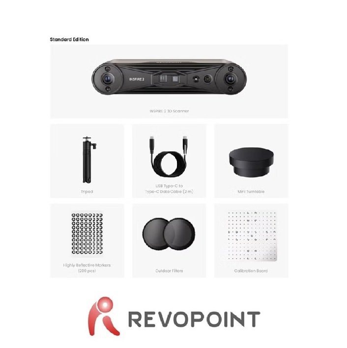 Revopoint INSPIRE 2 yra kompaktiškas, dviejų režimų 3D skaitytuvas, skirtas tiksliai ir detaliai nuskaityti mažus ir vidutinio dydžio objektus. Jame derinamas infraraudonųjų spindulių daugialinijinis lazeris ir struktūrizuotos šviesos technologija, kad būtų galima apdoroti įvairius paviršius, įskaitant tamsias ar blizgančias medžiagas. Nešiojamas ir lengvas, jis tinka tiek mobiliesiems, tiek stacionariems darbams, išlaikant profesionalų tikslumą.