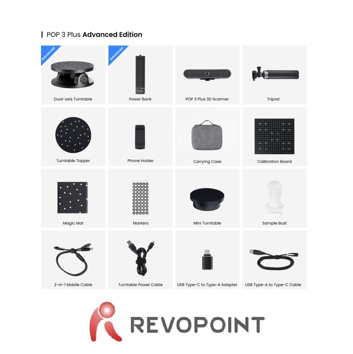 Revopoint POP 3 Plus – tai lengvas, mobilus ir itin tikslus 3D skeneris, skirtas 3D spausdinimui, dizainui, animacijai ir produktų kūrimui. Lyginant su ankstesniu modeliu, jis pasižymi net 20 % didesniu tikslumu, greitesniu veikimu ir papildoma optinio priartinimo funkcija.