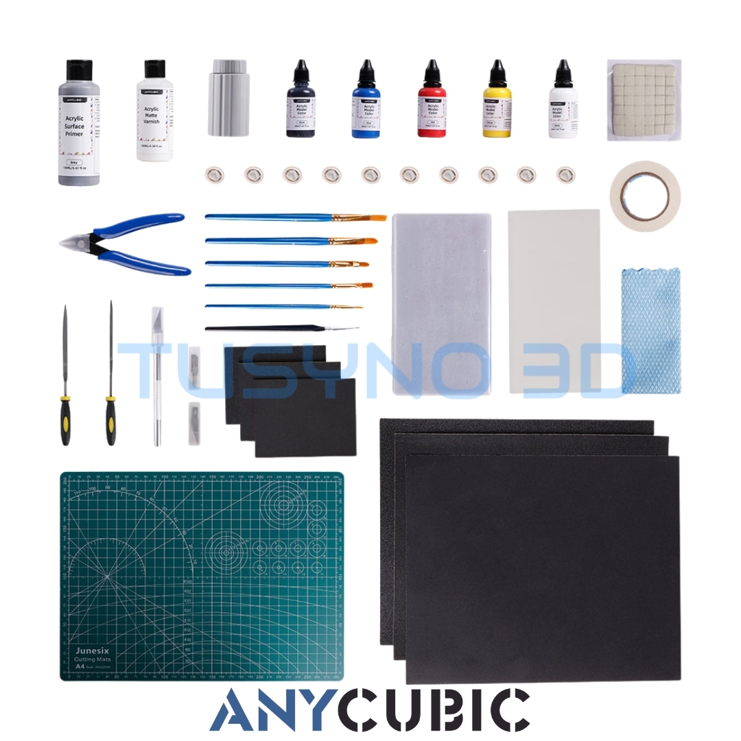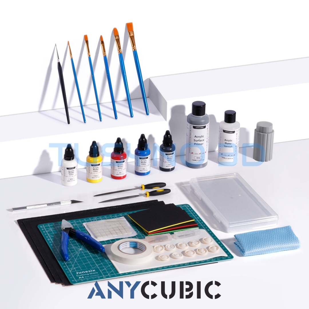 Anycubic 3D Printing Painting Kit – tai pilnas dažymo ir apdirbimo rinkinys, skirtas 3D spausdintų modelių paruošimui ir dažymui. Komplekte rasite visus reikalingus įrankius nuo paviršiaus paruošimo iki galutinio spalvinimo.