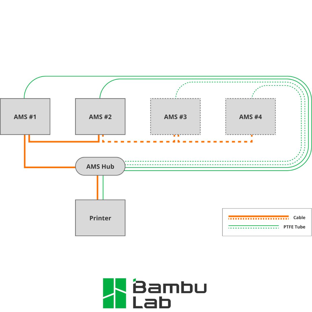 Bambu Lab AMS Hub modulis (SA002-N) – originali Bambu Lab dalis, skirta prijungti kelis AMS įrenginius prie X1 ir P1 serijos 3D spausdintuvų.