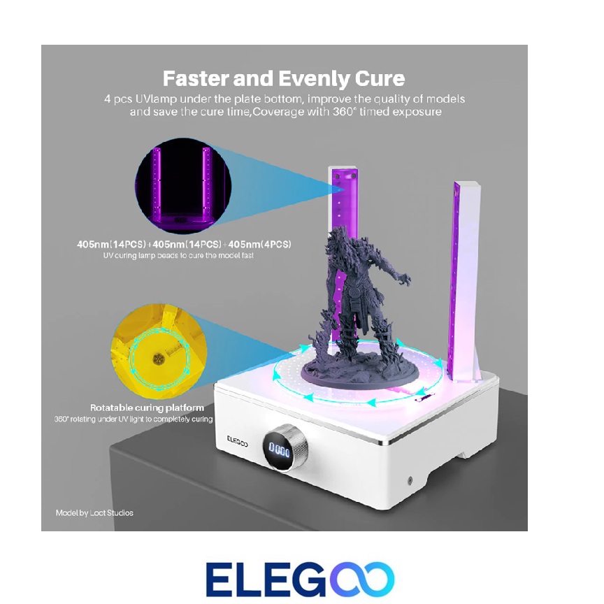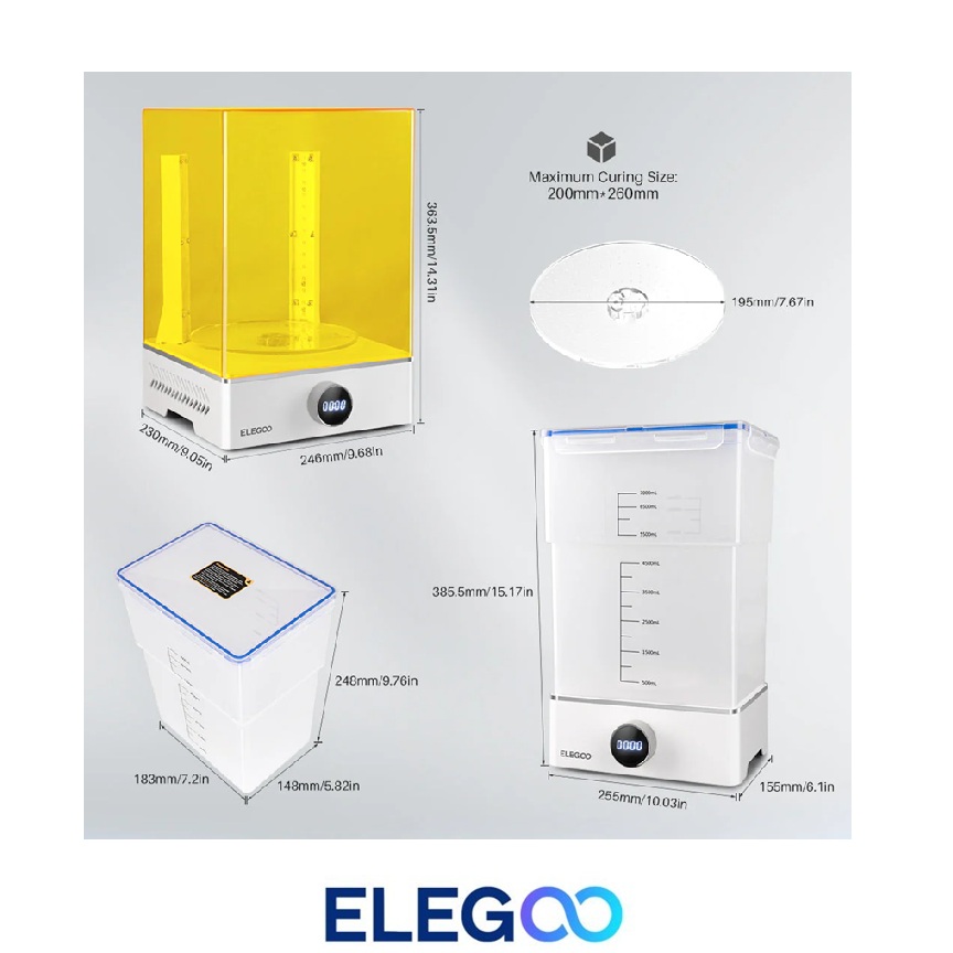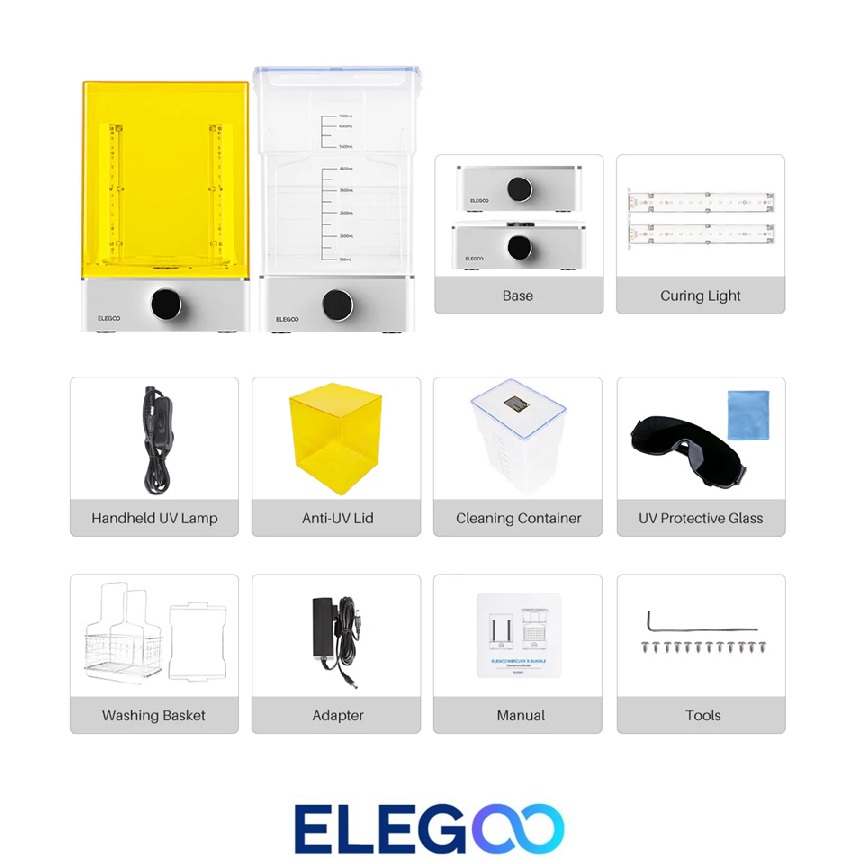 Elegoo Mercury XS rinkinys – tai viskas viename sprendimas, skirtas 3D spaudinių plovimui ir kietinimui. Šis įrenginys sukurtas tam, kad pagerintų apdorojimo po spausdinimo (post-processing) efektyvumą bei užtikrintų aukštesnę spausdinių kokybę. Dviguba funkcija, didelė plovimo talpa, 360° visapusis apšvietimas ir paprastas valdymas daro šį komplektą nepakeičiamu įrankiu kiekvienam, norinčiam supaprastinti ir pagreitinti 3D spausdinimo procesą.